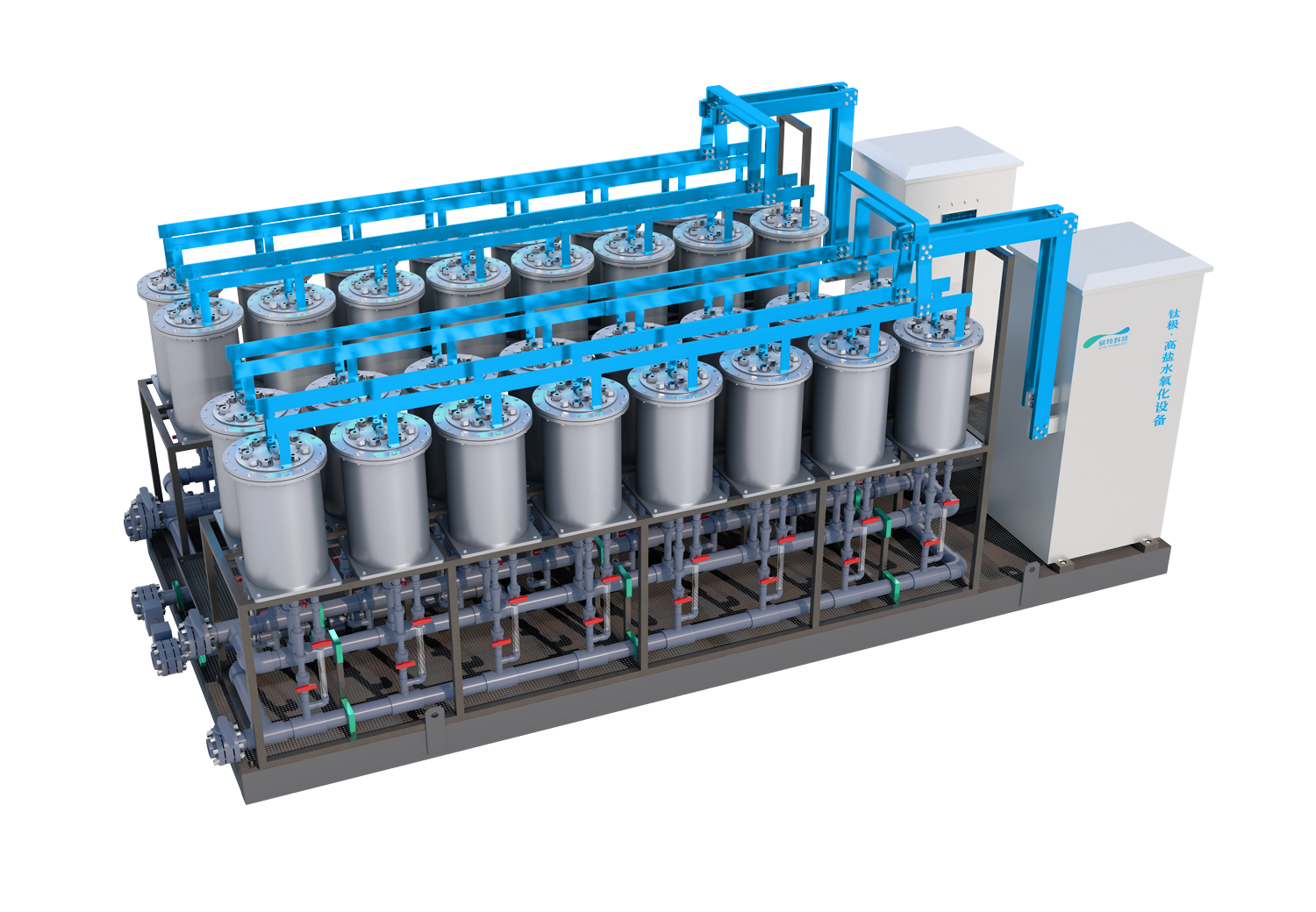 鈦極高鹽水氧化設(shè)備是一種可同時除有機物和氨氙的電化學(xué)氧化設(shè)備。本設(shè)備采用了含鈦復(fù)合陽極材料和特殊反應(yīng)器結(jié)構(gòu)設(shè)計,耐酸堿耐高電位腐蝕的能力強,設(shè)備使用壽命長,適用于各類高鹽高COD有機水的脫酸、高鹽含氨氨廢水的脫氫及色度處理。