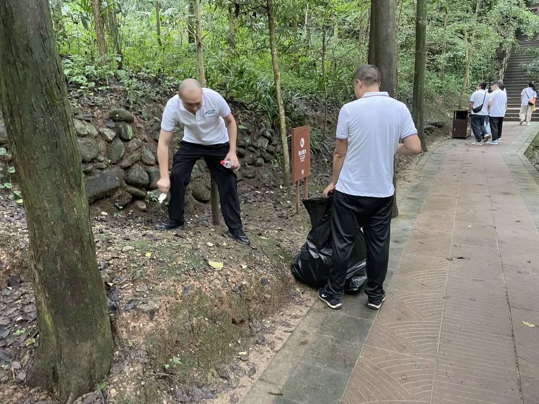 尋寶活動(dòng)結(jié)束后,大家稍作休整,下午1點(diǎn)從“康道”進(jìn)入,各組領(lǐng)取垃圾袋和垃圾夾,開(kāi)始沿著登山步道拾級(jí)而上。參與者們一路上積極行動(dòng),肉眼可見(jiàn)、只要是會(huì)影響風(fēng)景的垃圾都會(huì)撿起來(lái)放進(jìn)垃圾袋,至于那些隱藏在樹(shù)林深處的垃圾,他們則需要深一腳、淺一腳地踩下去,在隊(duì)員的攙扶和幫助下才能將其清理干凈。從山下到山頂、山頂?shù)缴较?,歷經(jīng)三個(gè)半小時(shí)每組手中的垃圾袋里收獲滿滿,登山步道的兩側(cè)也變得更加潔凈。